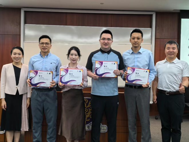(从左到右依次为:龚炫衣老师、2007届赵云、2016届魏婷、2009届吕海富、2024届林楚彪、FMBA同学会执行会长2015届张修海)