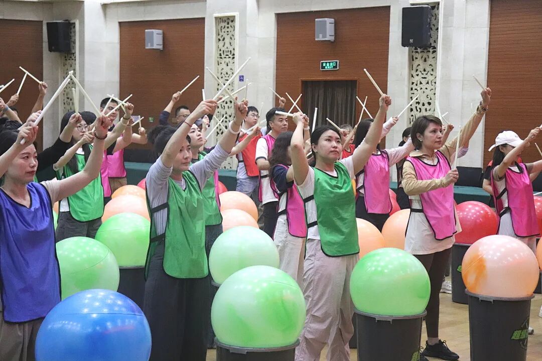 “超级有氧鼓”将活动气氛推向高潮。各小队在教练指导下,学习基础鼓点节奏,并发挥创意编排团队节目。从生疏到熟练,从杂乱到和谐,阵阵鼓声不仅是节奏的磨合,更是团队默契的锤炼。