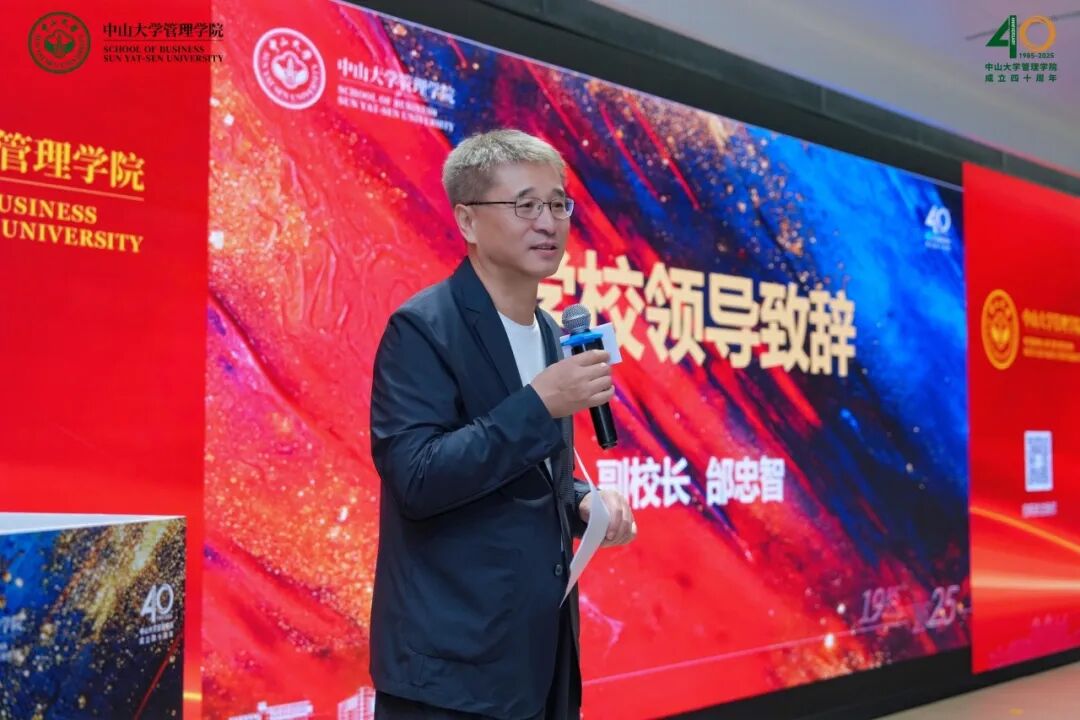 中山大学副校长邰忠智代表学校致欢迎辞,并表示在“双庆”的历史性交汇点,将A+学科落地深圳,不仅是致敬特区,更是服务国家战略、赋能大湾区高质量发展的具体行动。邰校长也充分肯定了管理学院在商科教育领域的卓越贡献。