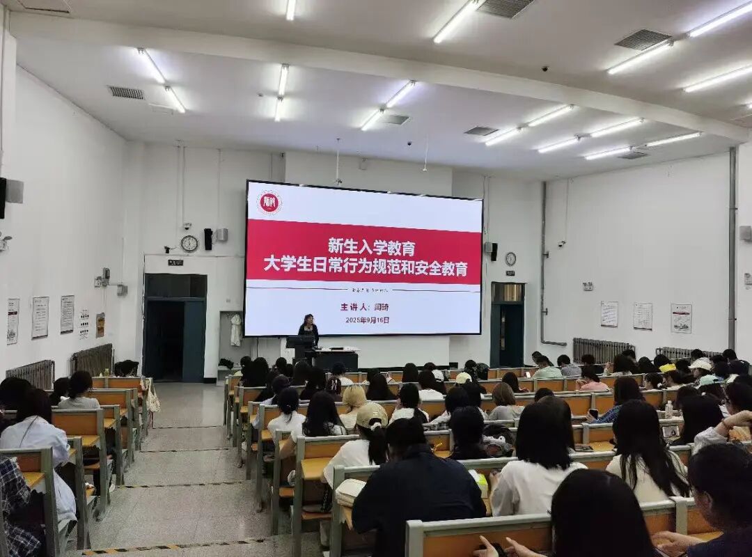 在校园适应与健康成长保障方面,学院聚焦新生的日常生活与身心健康发展,开展了一系列务实有效的教育引导。学院特邀学苑派出所郝俊会警官为全体新生作了校园安全法治教育讲座,重点普及了防范诈骗、火灾等安全知识与相关法律法规。心理健康中心于馨老师则为新生带来了“阳光心理健康”主题讲座,传授心理调适技巧并介绍学校心理支持资源。