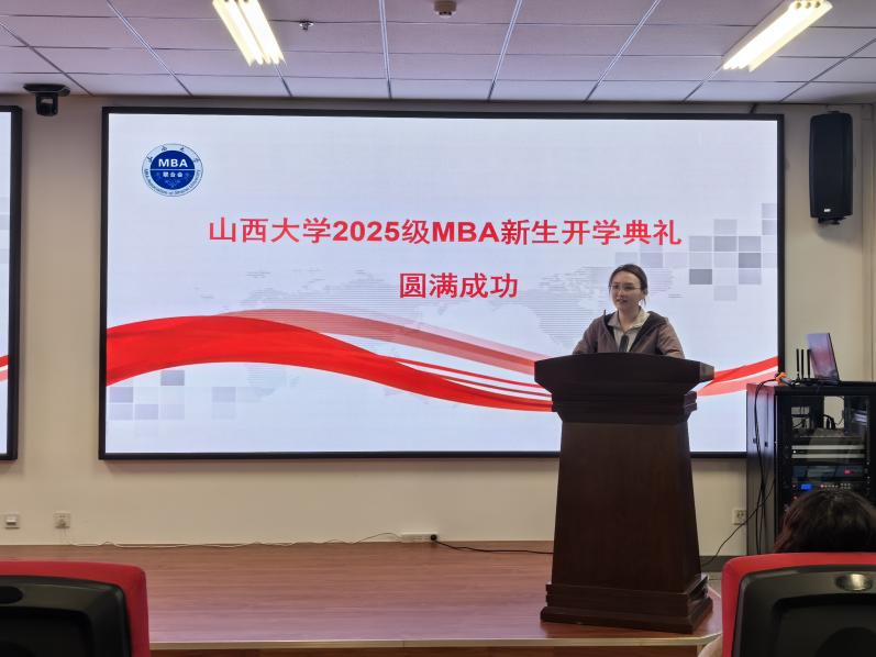 2025年10月18日上午9时,山西大学经济与管理学院2025级MBA新生开学典礼在庄严而热烈的氛围中隆重举行。本次典礼由MBA教育中心办公室主管李论老师主持,学院领导、MBA教育中心老师以及2025级全体MBA新生齐聚一堂,共同开启崭新的学术篇章。