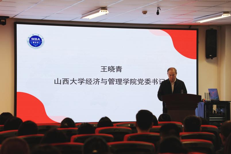典礼伊始,由山西大学经济与管理学院党委书记王晓青发表致辞。王书记代表学院向2025级MBA新生的到来表示热烈欢迎,并结合学院的发展历程与办学理念,阐述了MBA教育在培养高层次、复合型管理人才方面的重要使命。他勉励同学们珍惜宝贵的学习时光,在未来的学习生活中积极进取、勇于创新,以饱满的热情和严谨的态度投入到专业学习中,为学院增光添彩,也为自身职业发展筑牢根基。
