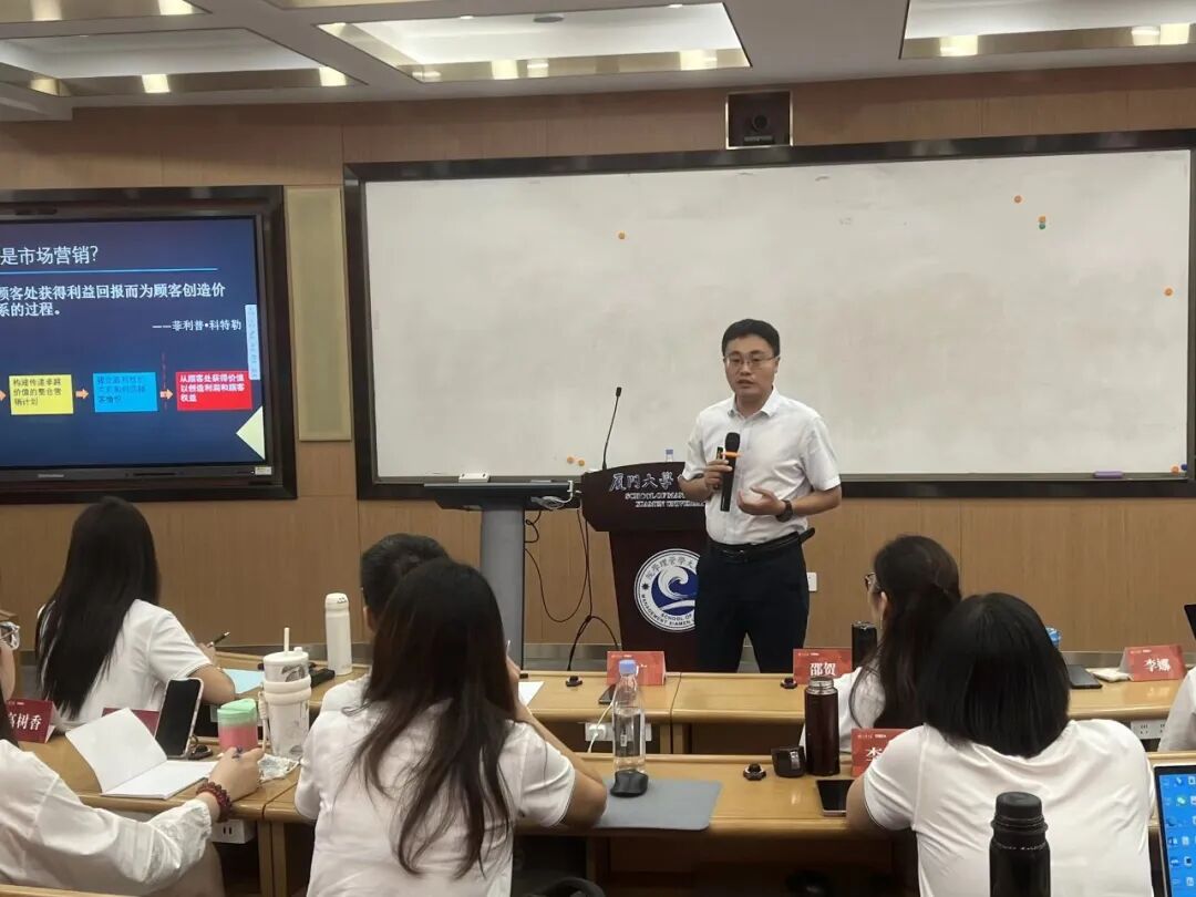 《以客户为中心的市场洞察和增长》为题展开专题授课。课程围绕市场趋势、客户需求、竞争格局等核心维度,从市场营销与消费者行为视角切入,深入剖析品牌管理、社交媒体运营、消费者自我控制等前沿议题。他还结合字节跳动、恒安集团等知名企业实战案例,生动阐释 “以客户为中心”的市场洞察方法论,让学员对数据驱动下的营销战略有了更深刻的认知。