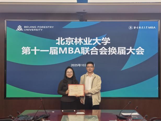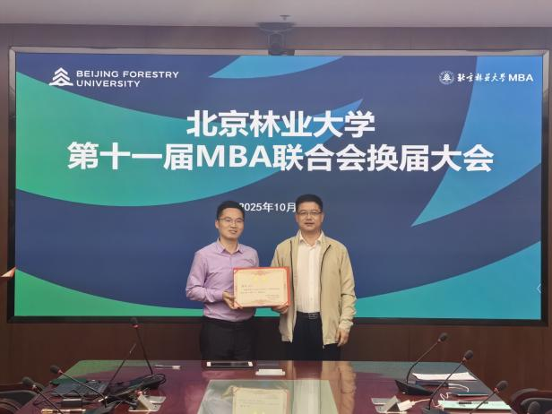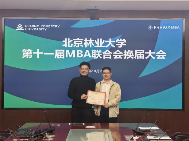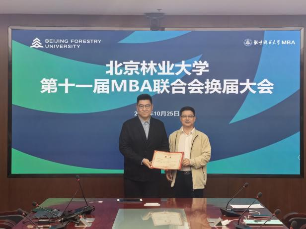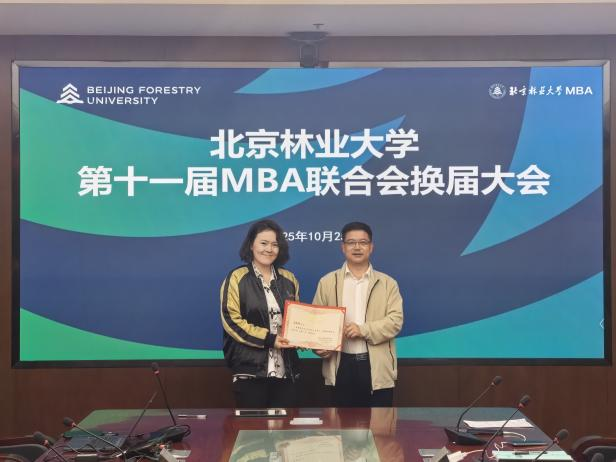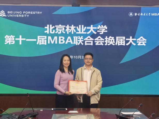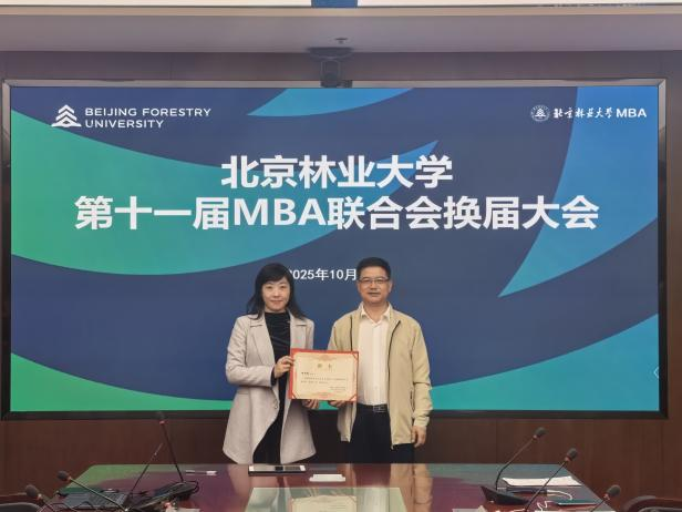 2025年10月25日,北京林业大学十一届MBA联合会换届大会在校举行。北京林业大学MBA教育中心执行主任张元,常务副主任李小勇,副主任王祎,教学管理部部长曹悦,第十届MBA联合会主席武佰涛,秘书处胡嘉兴,第十一届MBA联合会主席团全体成员参加了本次换届大会。